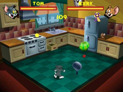 It's a knock down, drag out, slamfest to the finish in a slapstick fighting game like no other! It's your turn to catch the mouse or outwit that cat! Choose from Tom, Jerry, Butch, Spike, Tike, Tuffy, Toodles or Duckling in the zany mayhem that made this cast of characters famous. Fight with frying pans, pool cues, pies, drainpipes and much more. Fight to the finish in one of nine different arenas all based on classic Tom and Jerry settings. One or two players.